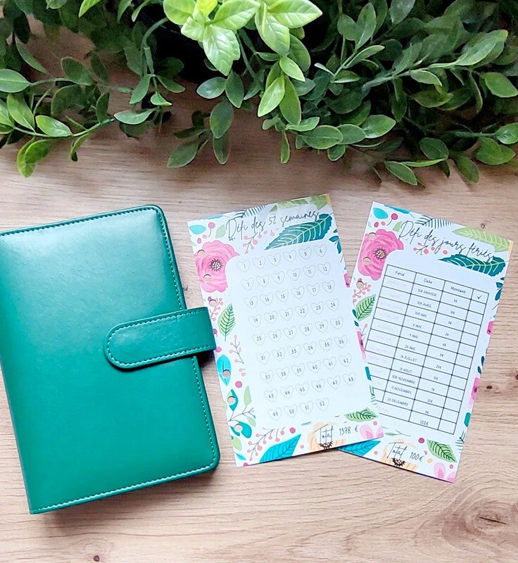 Personnalisez et complétez votre classeur A6 avec ce kit pratique et élégant. Suivre vos dépenses et relever vos défis d’épargne devient simple, motivant et coloré !